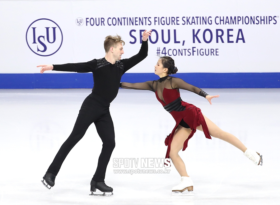 [스포티비뉴스=서울, 곽혜미 기자] 국제빙상경기연맹(ISU) 2019~2020 시즌 피겨스케이팅 4대륙선수권대회가 6일 서울 양천구 목동 아이스링크에서 열렸다. 민유라와 대니얼 이튼이 아이스댄스 프리 댄스를 선보이고 있다.스포티비뉴스=서울, 곽혜미 기자