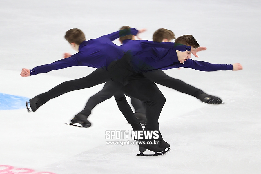 [스포티비뉴스=서울, 곽혜미 기자] 국제빙상경기연맹(ISU) 2019~2020 시즌 피겨스케이팅 4대륙선수권대회가 7일 서울 양천구 목동 아이스링크에서 열렸다. 로만 샤도브스키가 남자 쇼트 프로그램에서 연기를 펼치고 있다.스포티비뉴스=서울, 곽혜미 기자