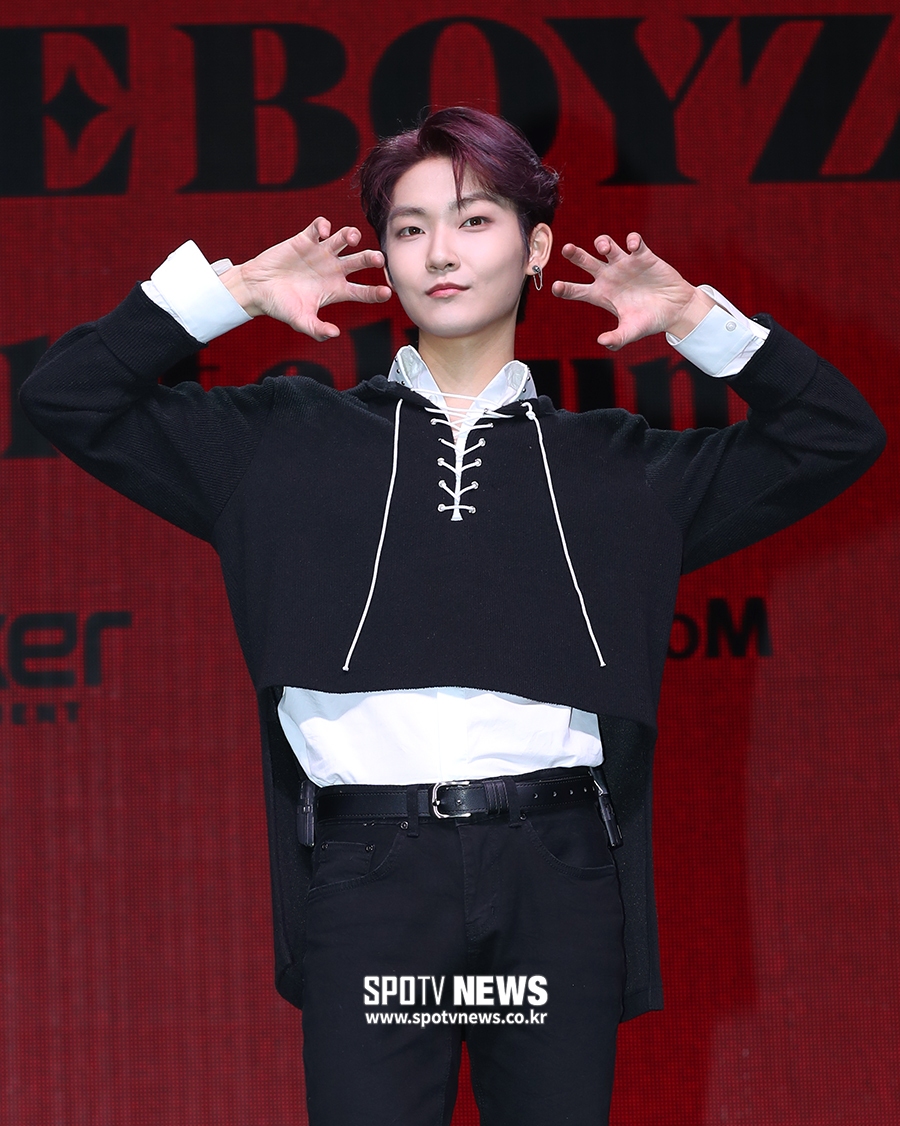 [스포티비뉴스=서울, 곽혜미 기자] 그룹 더보이즈 첫 정규 앨범 'REVEAL' 발매 기념 쇼케이스가 10일 오후 서울 광진구 광장동 예스24라이브홀에서 열렸다. 더보이즈 케빈이 포즈를 취하고 있다. 스포티비뉴스=서울, 곽혜미 기자