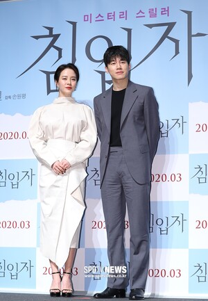 [스포티비뉴스=서울, 곽혜미 기자] 영화 ‘침입자’ 제작 보고회가 12일 오전 서울 강남구 CGV압구정에서 열렸다. 배우 송지효, 김무열이 포즈를 취하고 있다. 스포티비뉴스=서울, 곽혜미 기자