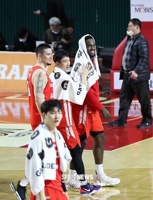 [스포티비뉴스=잠실, 곽혜미 기자] 2019-2020 현대모비스 프로농구 서울 SK와 부산 KT의 경기가 27일 오후 서울 잠실학생체육관에서 열렸다. 95-74로 승리한 SK 워니(오른쪽)가 미소를 짓고 있다. 스포티비뉴스=잠실, 곽혜미 기자