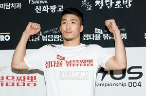 [스포티비뉴스=서울, 한희재 기자] 정다율 볶음짬뽕 제우스FC 004 계체량이 28일 오후 서울 서대문구 홍은동 스위스 그랜드호텔에서 열렸다. 계체를 통과한 안종기가 포즈를 취하고 있다. [스포티비뉴스=서울, 한희재 기자]