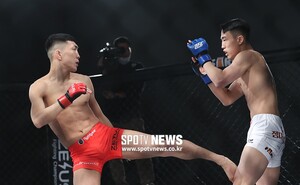 [스포티비뉴스=서울, 곽혜미 기자] 정다율 볶음짬뽕 제우스FC 004 대회가 29일 오후 서울 서대문구 홍은동 스위스 그랜드호텔에서 열렸다. 언더카드 플라이급 매치에서 김민준(오른쪽)과 이규현이 경기를 펼치고 있다. [스포티비뉴스=서울, 곽혜미 기자]