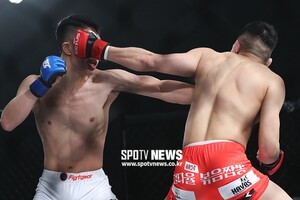 [스포티비뉴스=서울, 곽혜미 기자] 정다율 볶음짬뽕 제우스FC 004 대회가 29일 오후 서울 서대문구 홍은동 스위스 그랜드호텔에서 열렸다. 언더카드 플라이급 매치에서 김민준(레드)과 이규현이 경기를 펼치고 있다. [스포티비뉴스=서울, 곽혜미 기자]