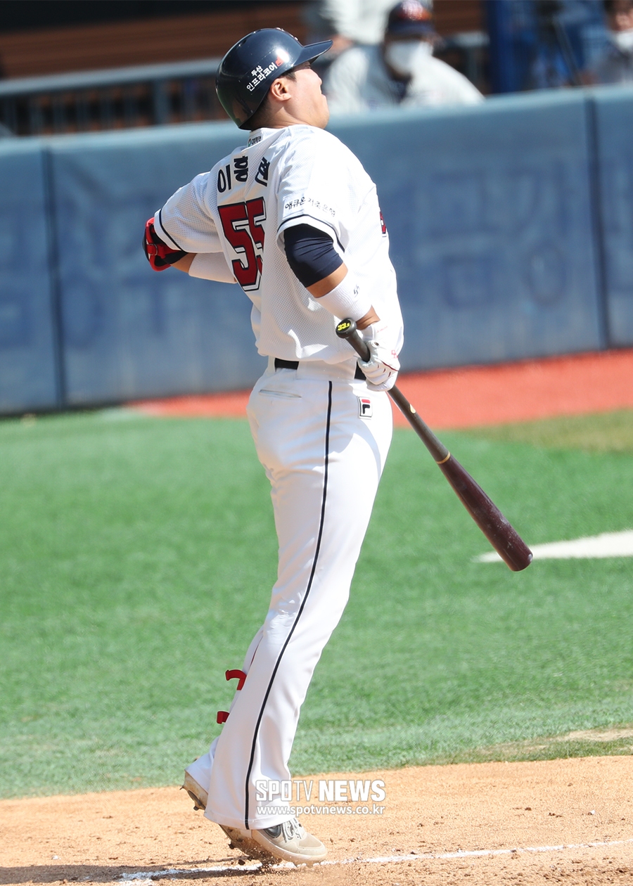 [스포티비뉴스=잠실, 곽혜미 기자] 두산 베어스 자체 청백전이 23일 오후 서울 잠실야구장에서 열렸다. 4회말 2사 백팀 이흥련이 채지선의 사구에 옆구리를 맞은 후 고통스러워하고 있다.스포티비뉴스=잠실, 곽혜미 기자