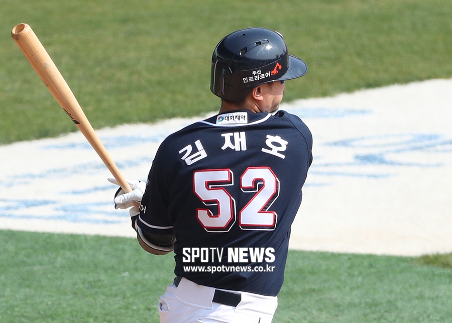 [스포티비뉴스=잠실, 곽혜미 기자] 두산 베어스 자체 청백전이 25일 오후 서울 잠실야구장에서 열렸다. 3회초 1사 1,2루 상황에서 청팀 김재호가 1타점 동점 적시타를 날리고 있다.스포티비뉴스=잠실, 곽혜미 기자