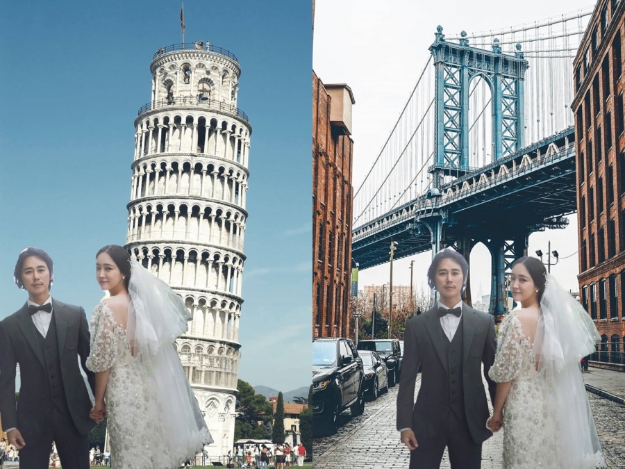 정태우는 12일 자신의 인스타그램을 통해 "집에만 있기 너무 답답해서 파리, 뉴욕, 피사로 리마인드 웨딩 화보 촬영 다녀왔어요"라며 사진 여러 장을 올렸다. 공개된 사진에는 에펠탑, 피사의 사탑 등 앞에서 턱시도와 드레스를 차려입은 정태우와 아내의 모습이 담겼다.
