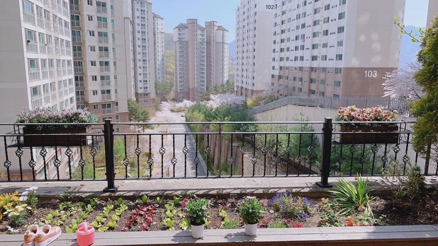 이어 소이현은 "꽃 구경"이라며 집 테라스에서 보이는 벚꽃나무와 화단을 공개해 많은 누리꾼들의 부러움을 자아냈다.