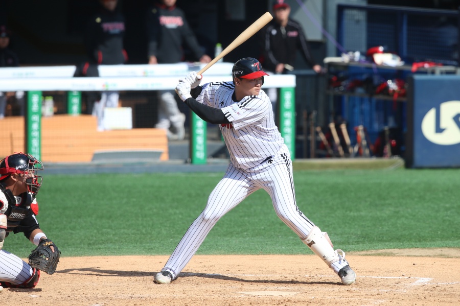 이재원은 14일 잠실구장에서 열린 청백전에서 김현수의 교체 선수로 출전했다. 이날 타석은 단 1번뿐이었지만 이 한 타석에서 류중일 감독이 "잘 크면 대타자가 될 선수"로 꼽은 이유를 보여줬다. 마무리 투수 고우석을 상대로 좌월 솔로 홈런을 터트렸다.