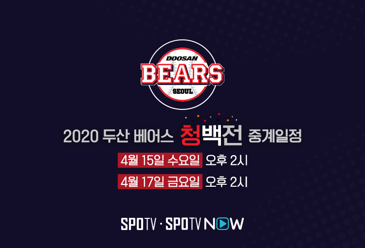 두산 베어스의 청백전은 내일(15일) 오후 2시 스포티비(SPOTV)에서 생중계되며, PC 및 모바일 시청은 온라인 스포츠 플랫폼 스포티비 나우(SPOTV NOW)에서 회원 가입 후 무료로 시청 가능하며, 다시 보기 영상 또한 스포티비 나우(SPOTV NOW)에서 서비스된다.