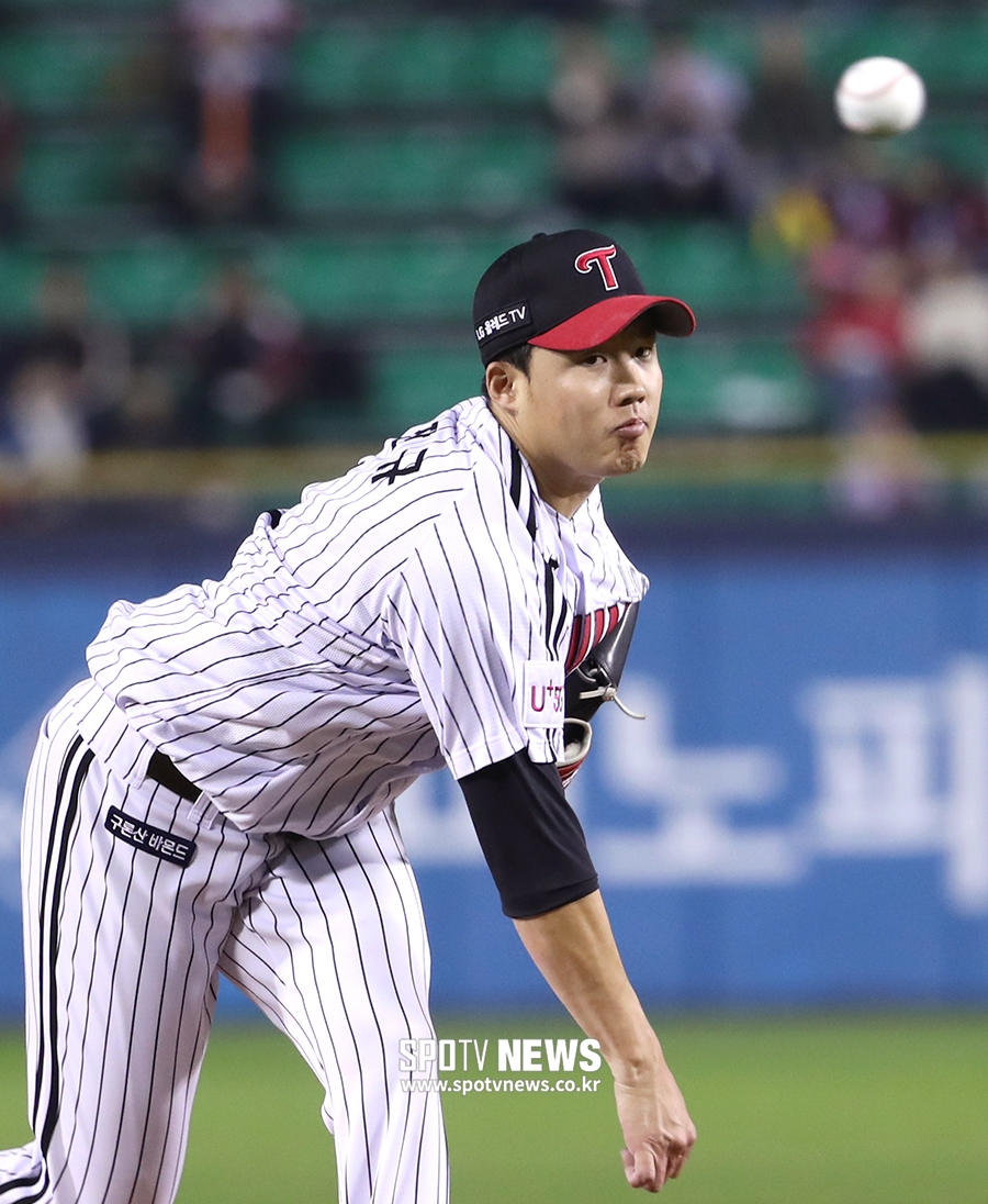 임찬규는 "지금까지는 실투가 나오면 타이밍이 좋은 정타가 됐다. 지금은 가운데로 가도 타이밍이 안 맞는다고 하더라. 직구와 체인지업을 던질 때 차이가 있다고 해서 바로잡으려고 노력했다"고 설명했다.