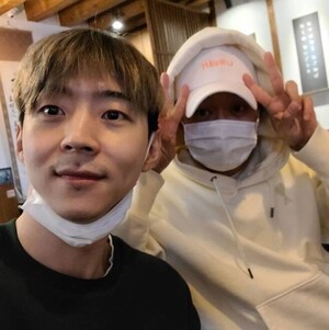 박유천 동생 박유환은 15일 자신의 인스타그램을 통해 '쉿' 포즈를 취하고 있는 이모티콘과 함께 사진을 올렸다. 공개된 사진에는 박유환 옆에서 하얀 후드티와 모자, 마스크를 착용한 채 눈만 드러낸 박유천이 양손으로 '브이' 포즈를 취하고 있다.