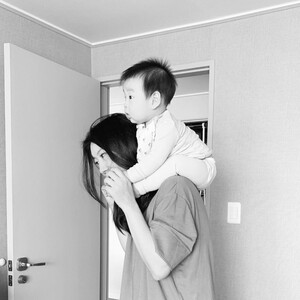 공개된 사진에는 아들 담호 군을 목마 태우기 자세로 자신의 어깨에 올려놓은 채 서있는 서수연 모습이 담겼다.