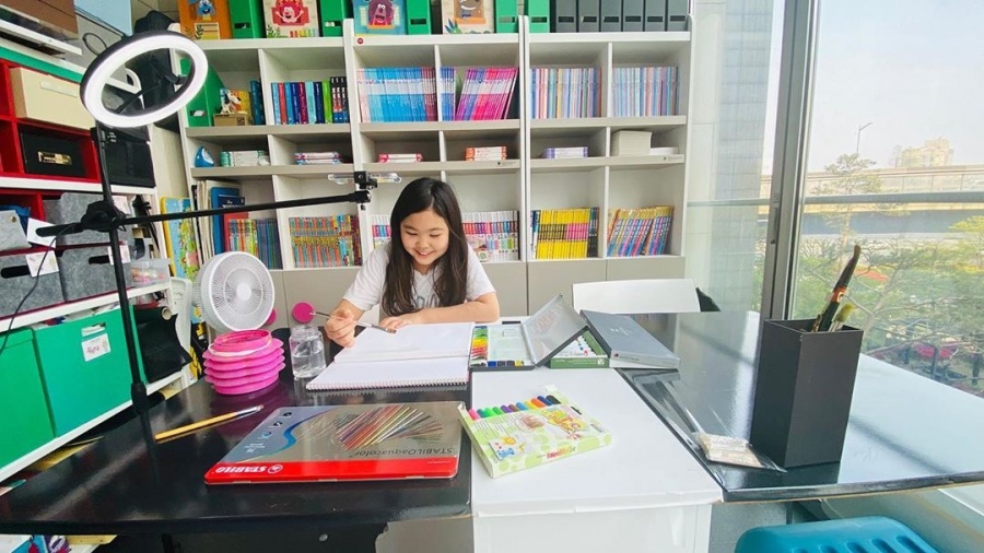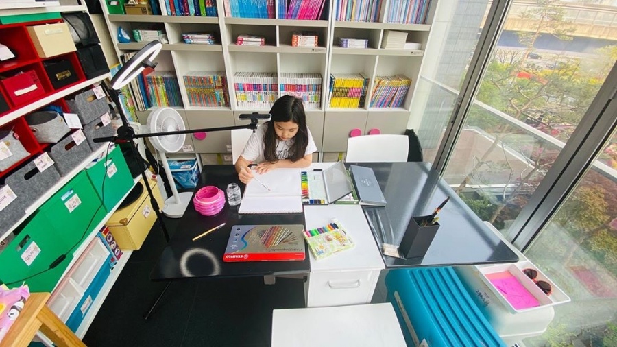 공개된 사진에는 밖이 훤히 보이는 커다란 유리창 옆에 큰 책상을 배치하고 뒤편에는 책장으로 꾸며놓은 아라 양의 작업실 모습이 담겼다.