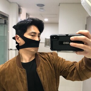 공개된 사진에는 마스크 대신 정체불명의 검은색 천을 두른 김재우가 거울 앞에서 촬영 중인 모습이 담겼다. 이를 본 누리꾼들은 김재우가 착용한 물건을 얼굴 V라인을 관리해 주는 천으로 추측하며 그의 모습에 폭소했다.