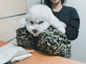 공개된 사진에는 밀리터리 바지를 입은 딸이 반려견을 무릎에 앉혀놓은 모습이 담겼다. 특히 반려견은 진태현을 마치 째려보는 듯한 표정을 짓고 있어 보는 이들을 폭소케했다.
