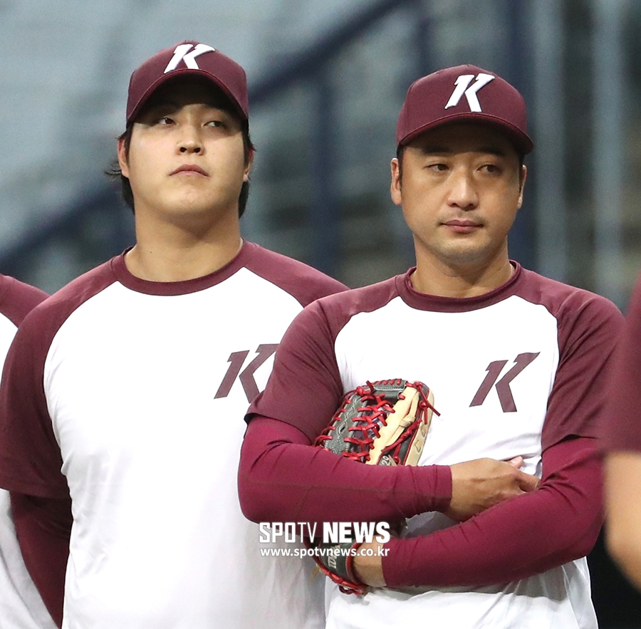 [스포티비뉴스=고척돔, 곽혜미 기자] 키움 히어로즈 훈련이 17일 오후 서울 구로구 고척스카이돔에서 열렸다. 조상우, 이택근이 코치의 말을 듣고 있다.스포티비뉴스=고척돔, 곽혜미 기자