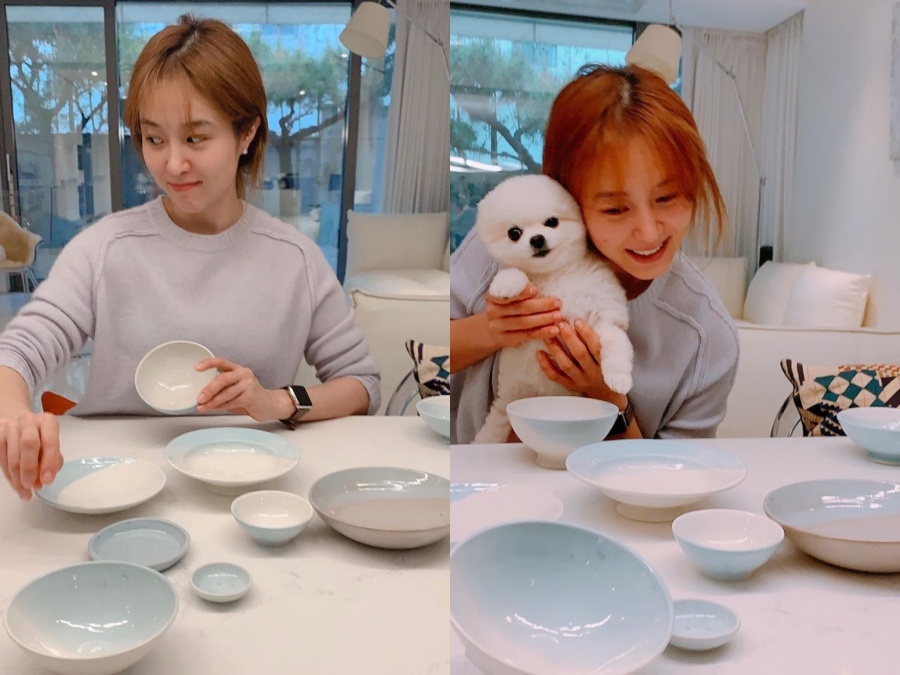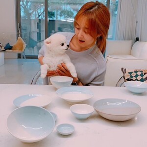 성유리는 17일 자신의 인스타그램에 "옥작가님의 그릇 선물 너무 좋다"라며 사진을 올렸다. 공개된 사진에는 성유리 집에 방문한 옥주현이 반려견을 품에 안은 채 미소 짓고 있다.