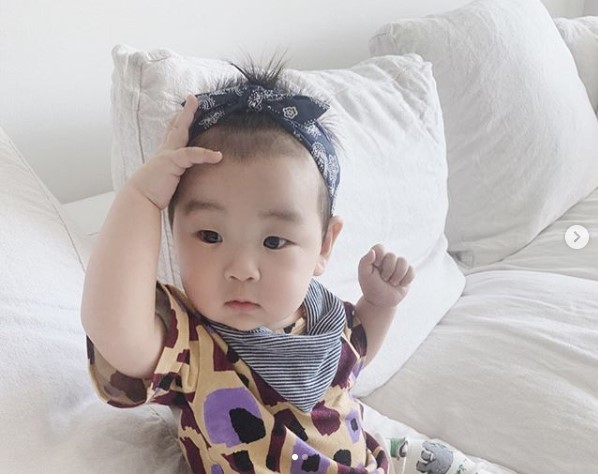 서수연은 18일 인스타그램에 "반다나 머리띠 했어요. 올빽. 그래도 삐죽 나오는 배냇머리"라는 글과 아들 담호 군의 사진을 게재했다.
