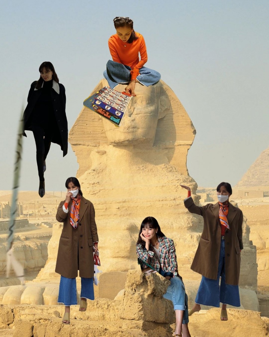 아울러 고소영은 지난 18일에는 "어디갈래 챌린지"라는 글과 함께 이집트 스핑크스 머리 위에 앉아있는 자신의 모습이 담긴 사진을 공개했다. 마치 실제로 이집트 여행을 떠난 것만 같은 고소영의 사진은 많은 화제를 모았고, 이는 최근 코로나19 확산에 따라 '사회적 거리두기'가 강조되고 있는 만큼 자신의 사진을 해외 유명 관광지 배경과 합성하며 '어디갈래 챌린지'에 참여한 것이다.
