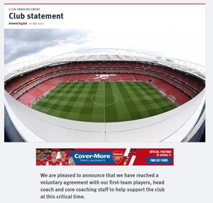 이어 "선수단과 코치진이 아스널 구단에 힘을 보태고 싶어 하는 의지가 있었다"라며 "12.5%의 연봉 삭감이 이번 달부터 시작된다. 계약서 작성은 며칠 안에 완료될 예정이다"라고 덧붙였다.