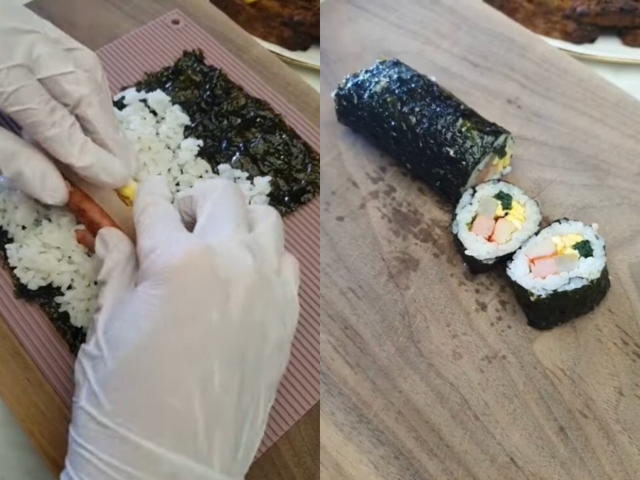 공개된 영상에는 위생장갑을 착용한 차예련이 직접 김밥을 만드는 과정과 딸 인아 양의 목소리가 함께 담겼다.