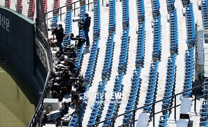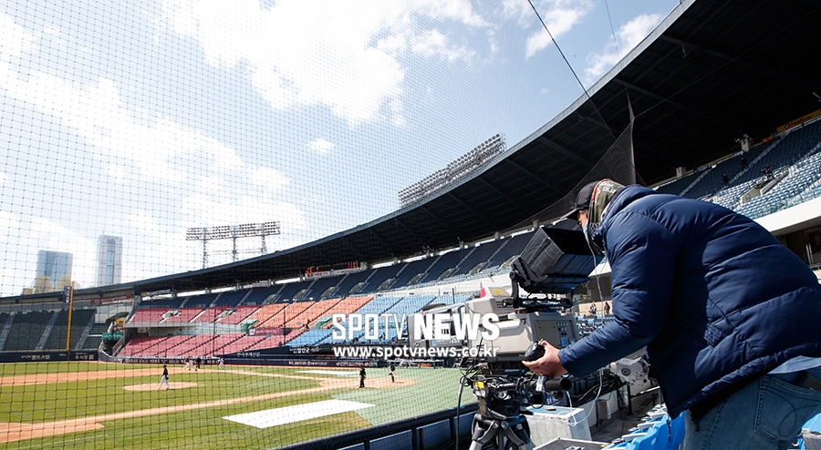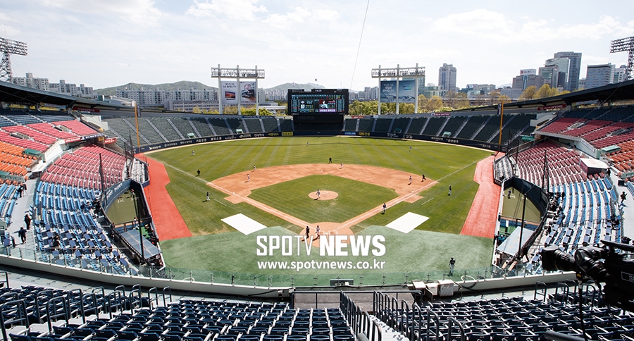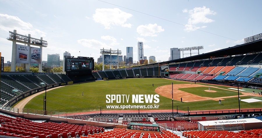 잠실야구장에서는 LG와 두산이 맞붙었다. 예년 같으면 라이벌전을 맞아 팬들의 열기로 가득했겠지만 관중석에는 취재진의 취재열기만 가득했다. 선수들과의 접촉을 피하고자 취재 구역도 관중석 상단으로 제한했다.