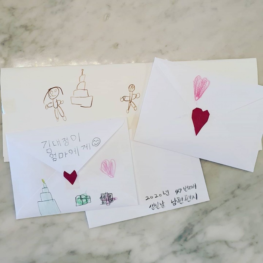 공개된 사진에는 "김대정이 엄마에게" "2020년 47번째 생일날 남편 편지"라는 글이 적혀있는 편지가 담겼다.