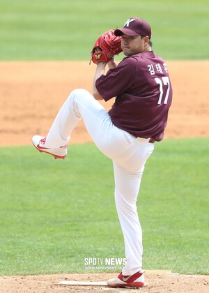 [스포티비뉴스=잠실, 곽혜미 기자] 두산 베어스와 키움 히어로즈의 연습 경기가 22일 오후 서울 송파구 잠실야구장에서 열렸다. 김동준에서 김태훈으로 개명한 김태훈이 역투하고 있다.스포티비뉴스=잠실, 곽혜미 기자