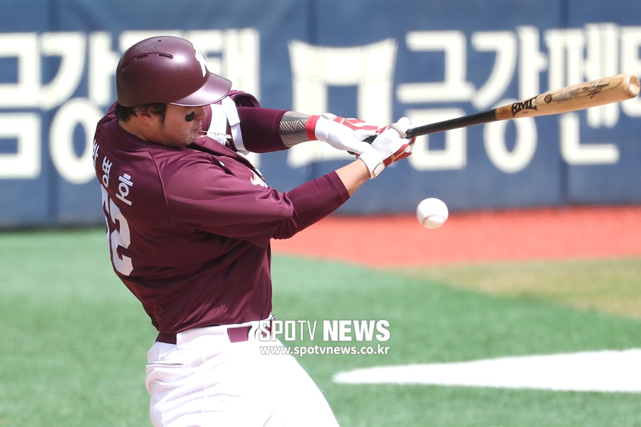 [스포티비뉴스=잠실, 곽혜미 기자] 두산 베어스와 키움 히어로즈의 연습 경기가 22일 오후 서울 송파구 잠실야구장에서 열렸다. 4회초 1사 주자 없는 상황에서 키움 박병호가 헛스윙 삼진을 당하고 있다.스포티비뉴스=잠실, 곽혜미 기자