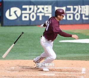[스포티비뉴스=잠실, 곽혜미 기자] 두산 베어스와 키움 히어로즈의 연습 경기가 22일 오후 서울 송파구 잠실야구장에서 열렸다. 8회초 1사 키움 이택근이 안타를 날리고 있다.스포티비뉴스=잠실, 곽혜미 기자