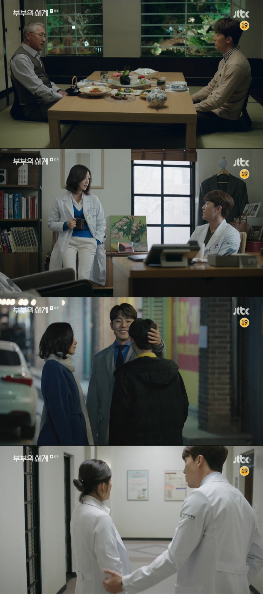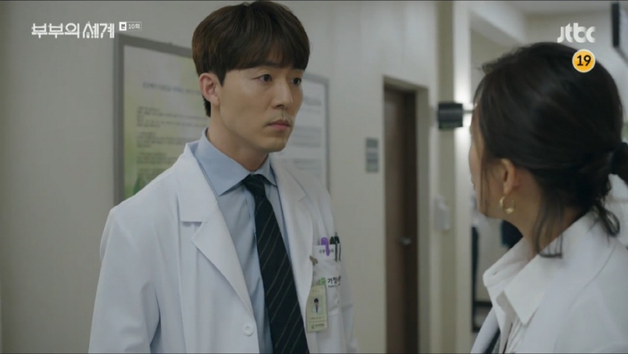 25일 방송된 JTBC 금토드라마 ‘부부의 세계’ 10회에서는 정신과 의사 김윤기(이무생)의 ‘두 얼굴’이 드러나 어떤 얼굴이 진짜인지 지선우(김희애)를 혼란스럽게 했다. 김윤기는 여병규(이경영)와 단 둘이 식사를 하며 지선우와 이태오(박해준)에 대한 정보를 흘리고, 가정사랑병원의 부원장 자리까지 얻게 되어 시청자들에게 충격을 안겼다.