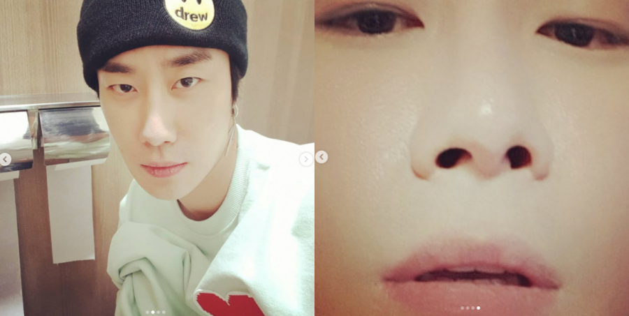 뿐만 아니라, 산이는 변기 옆 휴지가 걸려있는 배경으로 ‘셀카’를 찍는가 하면 모공 하나하나까지 다 보이는 ‘초근접 셀카’도 공개해 누리꾼들을 당황하게 만들었다.