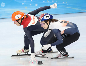 슐팅은 최민정을 향해 엄지손가락을 치켜세웠다. "그녀는 정말 위대한 스케이터"라며 라이벌을 칭찬했다.