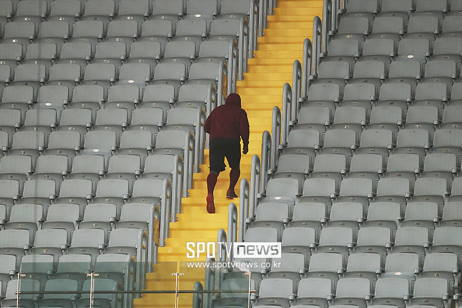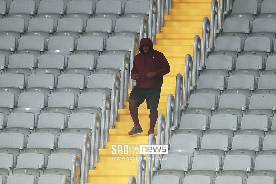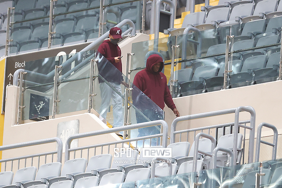 [스포티비뉴스=고척돔, 곽혜미 기자] 한국 야구에 적응하고 있는 푸이그가 경기 교체 후에도 쉬지 않고 계단 운동을 하며 몸을 만들었다.