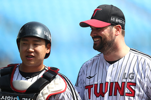 ▲ 플럿코 ⓒ곽혜미 기자 [스포티비뉴스=잠실, 곽혜미 기자] 2022 KBO리그 LG 트윈스와 롯데 자이언츠의 시범경기가 27일 오후 서울 송파구 잠실야구장에서 열렸다. 3회초 실점 없이 이닝을 마무리한 LG 선발 플럿코가 미소를 짓고 있다.