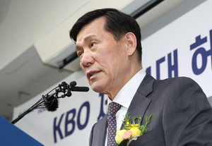 ▲ 허구연 총재 ⓒ곽혜미 기자 [스포티비뉴스=도곡동, 곽혜미 기자] KBO 제 24대 허구연 총재 취임식 및 기자회견이 29일 오후 서울 강남구 도곡동 야구회관에서 열렸다. 허구연 총재가 질문에 답하고 있다.