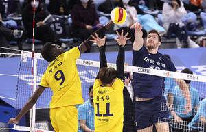 ▲ 링컨 ⓒ곽혜미 기자 [스포티비뉴스=인천, 곽혜미 기자] 도드람 2021-2022 V리그 남자부 대한항공과 KB손해보험의 챔피언 결정 1차전이 5일 오후 인천 계양체육관에서 열렸다. 대한항공 링컨이 공격을 시도하고 있다.