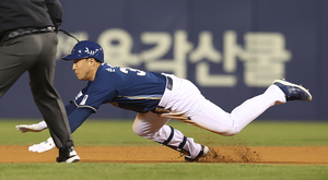 [스포티비뉴스=잠실, 곽혜미 기자] 2022 신한은행 SOL KBO리그 LG 트윈스와 NC 다이노스의 경기가 8일 오후 서울 송파구 잠실야구장에서 열렸다. 6회초 2사 2루타를 날린 NC 손아섭이 2루 베이스에 전력질주해 슬라이딩 하고 있다.
