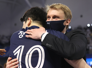 [스포티비뉴스=인천, 곽혜미 기자] 도드람 2021-2022 V리그 남자부 대한항공과 KB손해보험의 챔피언 결정 3차전이 9일 오후 인천 계양체육관에서 열렸다. 우승을 거둔 대한항공 틸리카이넨 감독과 정지석이 포옹을 하고 있다.