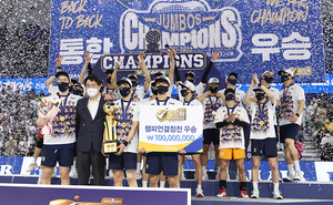 ▲ 대한항공 ⓒ곽혜미 기자 [스포티비뉴스=인천, 곽혜미 기자] 도드람 2021-2022 V리그 남자부 대한항공과 KB손해보험의 챔피언 결정 3차전이 9일 오후 인천 계양체육관에서 열렸다. 우승을 거둔 대한항공 선수들이 기념 촬영을 하고 있다.