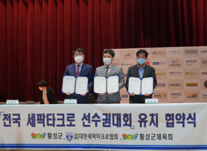 [스포티비뉴스=허윤수 기자] 대한세팍타크로협회(회장 오주영)와 횡성군이 저변 확대와 지역 경제 활성화를 위해 손을 잡았다.