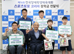 [스포티비뉴스=정형근 기자] 제16회 전국장애학생체육대회에 참가한 5명의 장애학생 꿈나무가 ㈜스포츠토토코리아가 후원한 장학금 대상자로 선정됐다.
