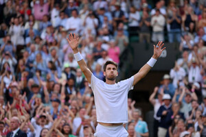 노리는 6일(한국시간) 영국 윔블던의 올잉글랜드클럽 1번 코트에서 열린 2022년 윔블던 테니스 대회 남자 단식 8강전에서 다비드 고팽(31, 벨기에, 세계 랭킹 58위)을 3-2(3-6 7-5 2-6 6-3 7-5)로 이겼다.