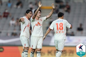 김천 상무는 성남 탄천종합운동장에서 열린 성남FC전에서 4-1로 이겼다. 조규성, 김경민이 나란히 1골 1도움을 해냈고 명준재는 추가 시간에만 두 골을 넣었다. 김천(26점)은 10위로 올라섰고 성남(18점)은 꼴찌에 머물렀다.