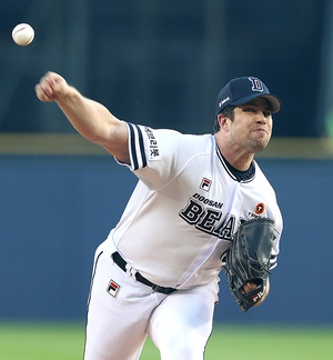 ▲ 스탁 ⓒ곽혜미 기자 [스포티비뉴스=잠실, 곽혜미 기자] 2022 신한은행 SOL KBO리그 두산 베어스와 롯데 자이언츠의 경기가 1일 오후 서울 송파구 잠실야구장에서 열렸다. 두산 선발 스탁이 역투하고 있다.
