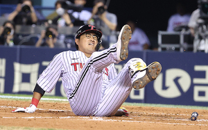 [스포티비뉴스=잠실, 곽혜미 기자] 2022 신한은행 SOL KBO리그 LG 트윈스와 SSG 랜더스의 경기가 6일 오후 서울 송파구 잠실야구장에서 열렸다. 4회말 1사 2,3루 상황에서 종아리에 사구를 맞은 LG 채은성이 고통스러워하고 있다.