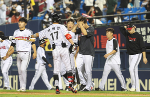 ▲ LG ⓒ곽혜미 기자 [스포티비뉴스=잠실, 곽혜미 기자] 2022 신한은행 SOL KBO리그 LG 트윈스와 SSG 랜더스의 경기가 6일 오후 서울 송파구 잠실야구장에서 열렸다. 6-8로 패배한 LG 선수들이 경기 종료 후 아쉬워하고 있다.