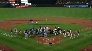 7회초가 끝나고 양 팀 벤치가 충돌했다. 채프먼을 삼진으로 돌려세우며 이닝을 끝낸 브라이언 베이커가 상대 벤치를 향해 제스처와 함께 메시지를 건넸고, 이를 본 토론토 벤치가 흥분을 감추지 못하며 벤치 클리어링이 일어났다.