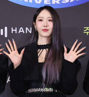 [스포티비뉴스=서울, 곽혜미 기자] '31주년 한터뮤직어워즈 2023' 레드카펫 행사가 17일 오후 서울 동대문디자인플라자에서 열렸다. 비비지 신비가 포즈를 취하고 있다.